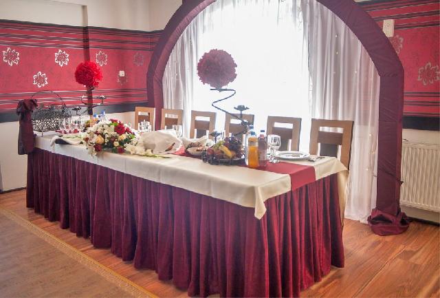 Meniurile de nuntă încep de la 110 Lei/persoană, cele de botez de la 65 Lei/persoană iar pentru majorate de la 90 Lei/persoană. Prețurile pot varia în funcție de preferințele și necesitățile dumneavoastră și numărul de persoane. Pentru viitori miri și invitații acestora, pensiunea vă pune la dispoziție parcare gratuită supravegheată video, camere dotate cu internet.